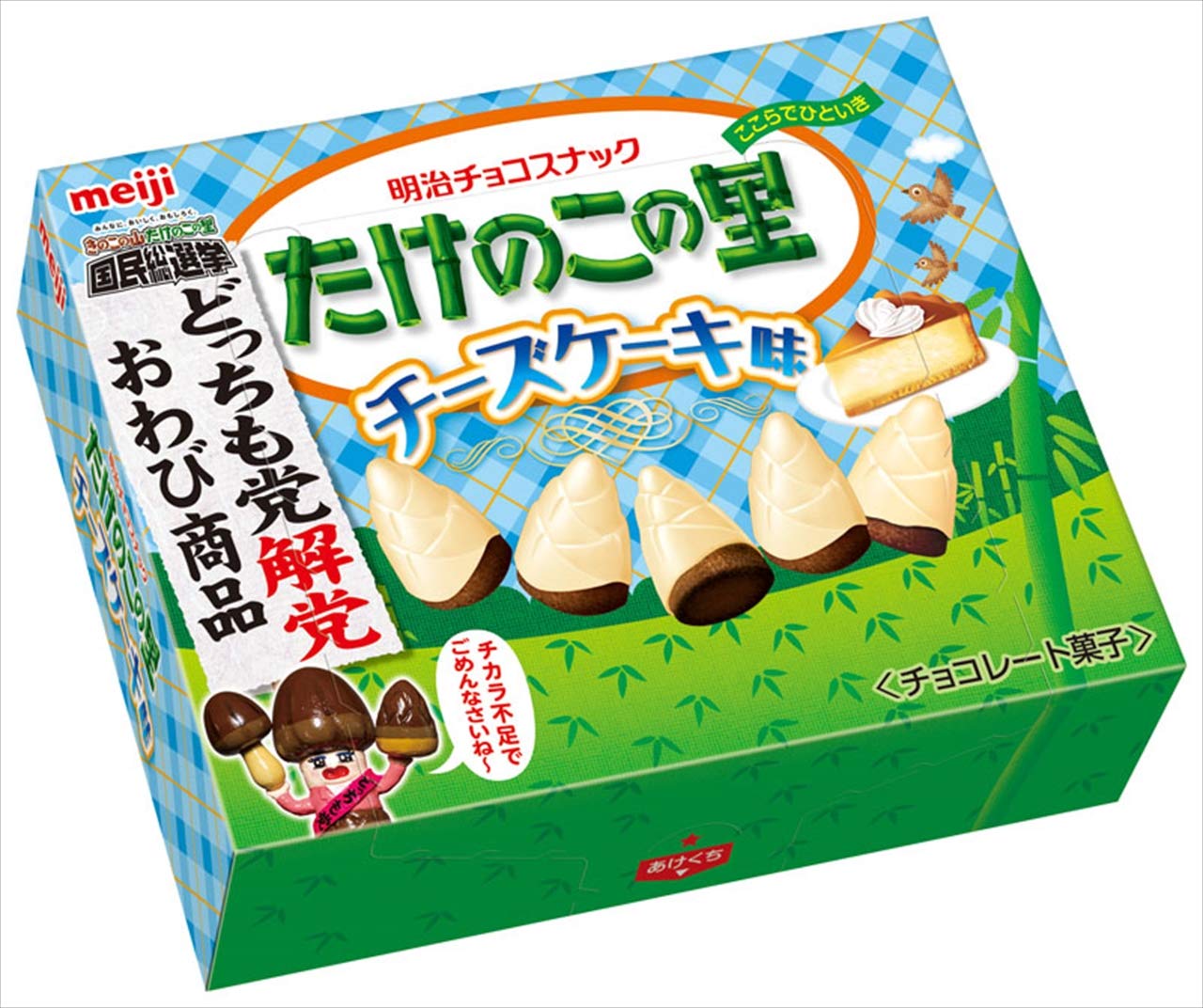 初めて見た!チーズ大好きにとっては見過ごせないでしょう。普段からたけのこの里は良く買っていたけど、コレは本当にチーズケーキの風味がもう美味しいし、チョコクッキー?との相性が絶妙!3個買ったけどもっと買えば良かったよ(//∇//)