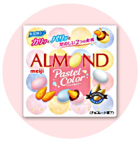 パステルカラーが可愛いです。昔あったマーブルチョコだったか?あれに近い感じはしますが、中はアーモンドだから良いです。