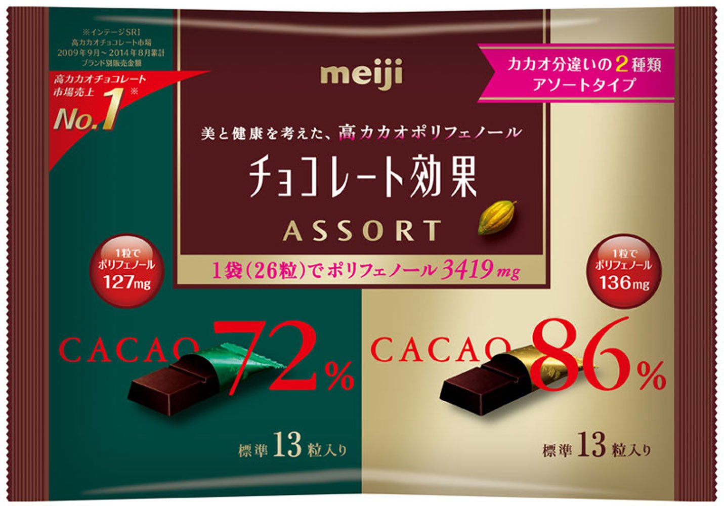 カカオ72%と86%の両方が入っています。カカオが多く入っているのでポリフェノールたっぷり、甘みが少なく美味しいです。