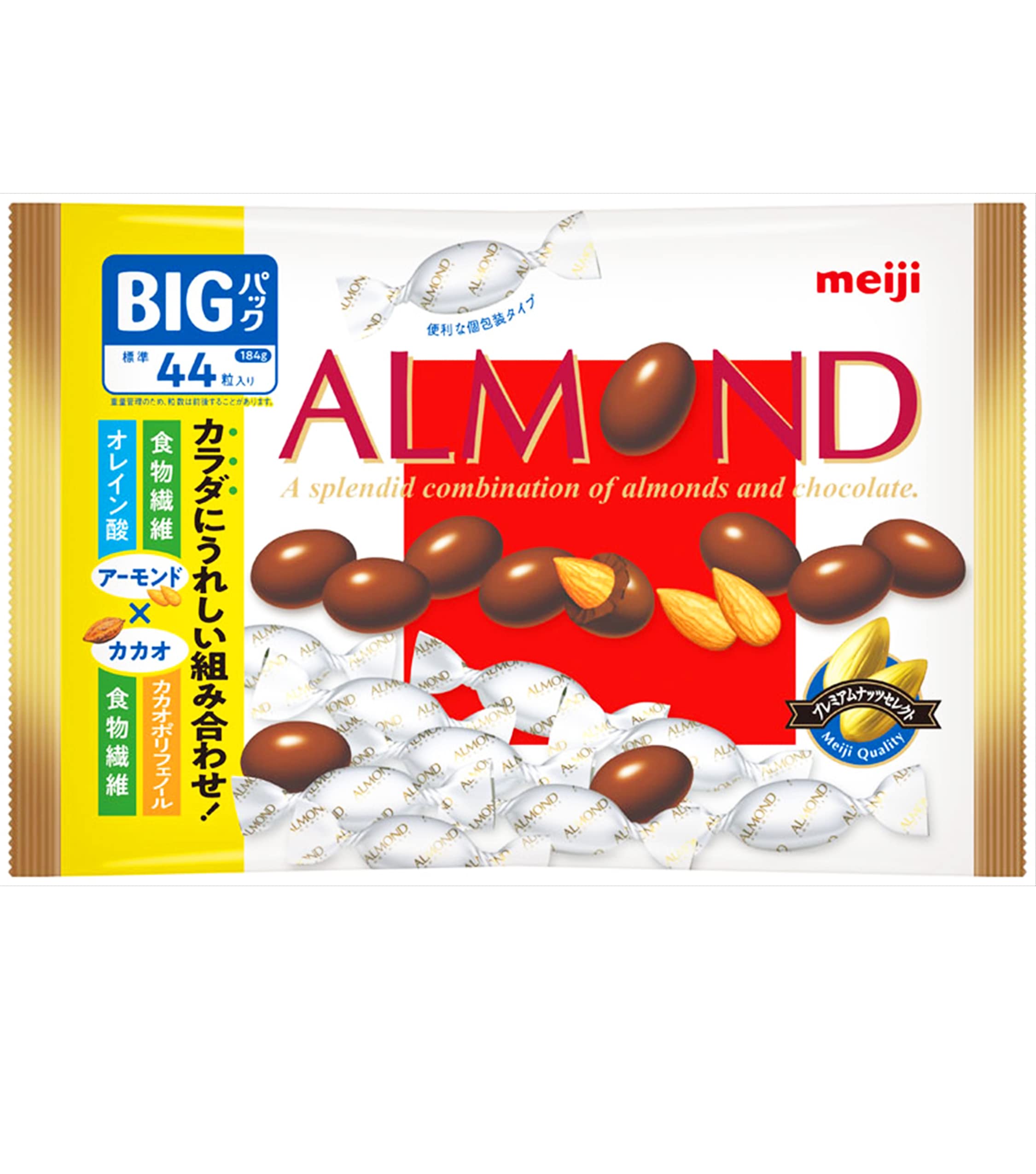 ♫チョッコレート、チョッコレート、チョコレートは明治♫と言うCMが昔ありました。なのでチョコ=明治の私。個包装だから会社で配りやすい。アーモンド✖️カカオ=身体にいいと巷でよく言いますよね。美味しいです。食べ過ぎ注意!