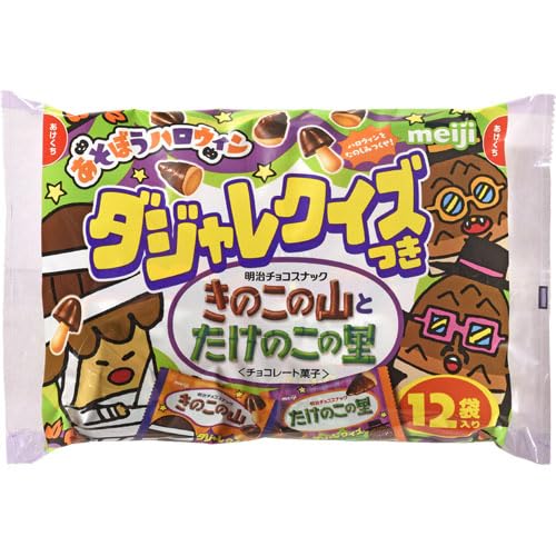 ハロウィーンバージョンで、袋になぞなぞが書いてあるので面白いなと思って買いました。 我が家はきのこ派とたけのこ派がいるので、このお菓子をいつも買います