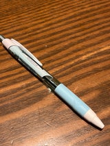 ホントはこの本体カラーで0.5が欲しいんです。ペンを引っ掛ける部分も色が入ってて欲しいから。だから、0.38と0.5を一緒に買って、中身を入れ替えてカスタムしています。このブルーは、お徳用パックが出てほしいくらいです。