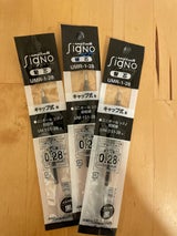 字がキレイに書けるシグノが好き。手持ちの本体には0.38芯が入っていましたが、0.28にも対応することを確認できたので購入。