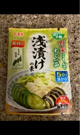 液体の浅漬けのもとは多々あるが、実は粉末の方が使いやすい。野菜はほとんど自前の水分を持っているから、それがどのくらい抜けたかで漬かり具合の目安になるが、液体だとわかりにくいからだ。 粉末なら、ある程度自分好みの塩加減に調整できる。柚子やレモンを加えたり、アレンジも簡単。粉末のもとが主流になって、多くのスーパーで扱ってくれると嬉しい。