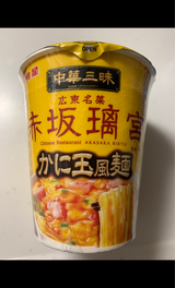中華風ラーメンのインスタント。かに玉の風味もきちんとあり美味しい。ただ、好き嫌いはありそうな気がする。