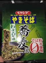 蕎麦ではないのですが、蕎麦風味の麺に出汁風味のソースで、イレギュラーシリーズの中ではダントツ美味しかった。が、わさび菜が辛い!麺をすすると辛味でむせるので要注意。目もしみて涙目になります。