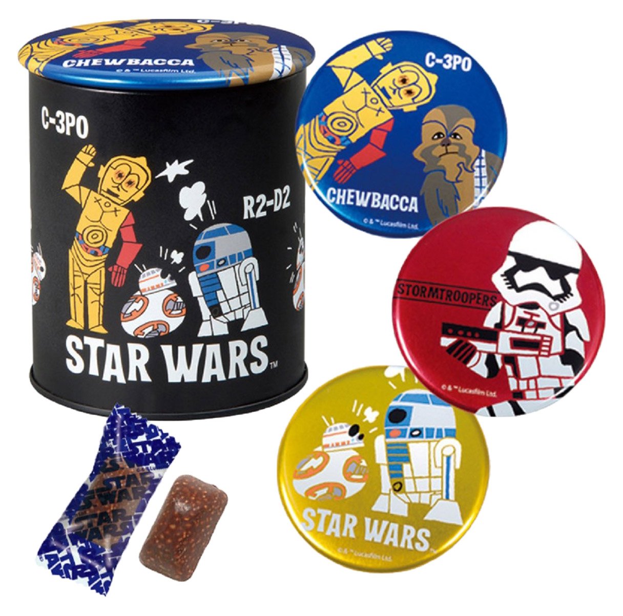 スターウォーズが好きなので買ってみました! 缶と缶バッジが可愛いです(^^♪