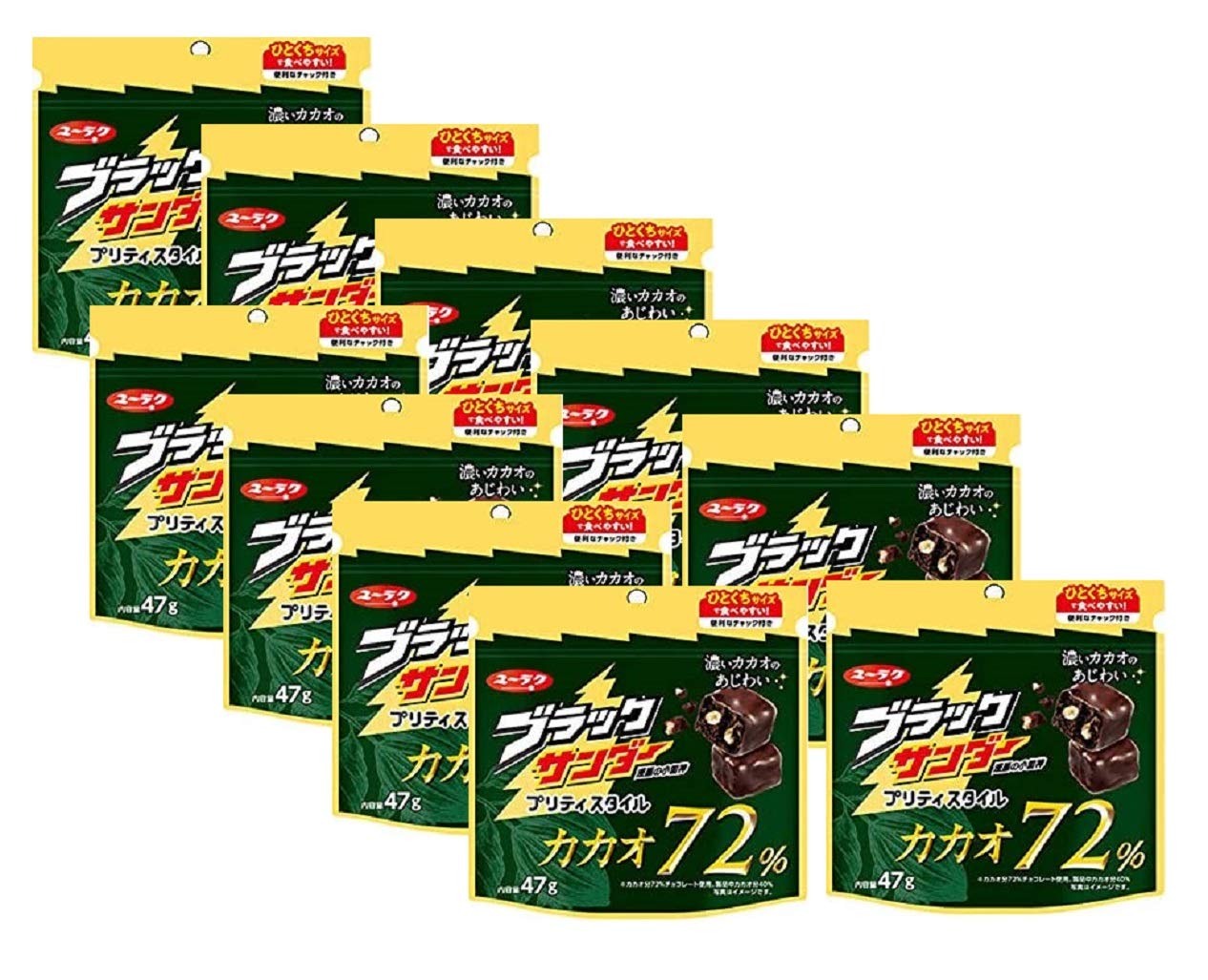クーポンでブラックサンダーを良く頂いていて、お菓子売り場で見つけて、購入してみました。カカオ72%でチョコの苦味にビスケット部分の相性が良くて、すごくおいしかった。今度から定期的に購入したい。開封してもジップ付きなのも良い。