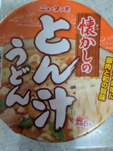 マルちゃんの豚汁うどんが無かったので、代用で買った。 マルちゃんと比べると数段落ちる。