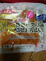 薄皮シリーズ大好き!薄皮プレミアムって書いてる!さくら味のクリームとこしあんがマッチしてて美味しい!