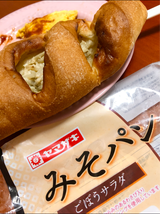 ヘルシーでなおかつベーカリーパンにも引けを取らないそのビジュアル。ただ、、原材料のどこにも、“みそ”と記載が無いのに、なぜ“みそパン”?!!?ヤマザキさん、教えてくれますか?ただ、ゴボウサラダもいい。健康的って感じ。私はここに少しだけハーフカロリーマヨを加えました。美味しかったです。