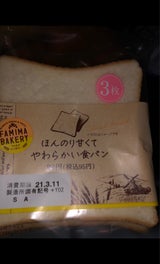 ファミマベーカリーの食パン3枚入りです。ふんわりとしていて美味しいです。