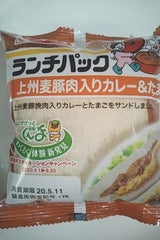 安売りで 98円 2枚入り。上州麦豚(群馬県産)は判別不能だったけど、甘口のポークカレーですね。タマゴサラダも甘いため、ちとパンチに欠けるかも。132kcal ×2で 264kcal。リピは微妙。
