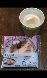 皮がもちもちでした! ドラえもんのパッケージ可愛い💕 あんことホイップで甘さも軽めになり、苺の酸っぱさがちょうど良いです♪