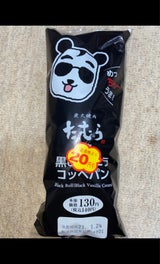 『焼肉たむら監修 黒deバニラコッペパン』です。レビューの商品名が何故かフレンチクルーラーになってます‥ パン生地、クリーム共に黒い!あまり期待せず興味本位で買いましたが、甘さもちょうど良くなかなか美味しかったです!