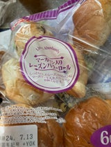 6個入りで91円のマーガリン入りレーズンバターロールです。