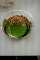 わらび餅のような食感。プラスチックのスプーンだと切りにくいので、和スイーツ用のものがあればいいと思った。