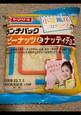 女優小芝風花プロデュースのYAMAZAKIランチパック、粒ピーナッツとナッティチョコです。 裏面には小芝風花のメッセージも有ります。
