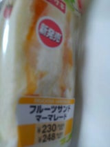 「フルーツサンド マーマレード」が商品名。ただただ甘い。おやつサンド。