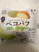 山崎製パン ヤマザキ ペコパフ(静岡県産クラウンメロン)は、静岡県産クラウンメロンのピューレ入りクリームを使用していてとても美味しいです。
