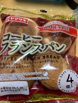 フランスパンにしては柔らかいです。中のコーヒークリームはバタークリームをコーヒー味にしたようなもので、口の中でやわらかい微妙なフランスパン風のパンと脂っこいけど味はコーヒーでほんのり甘い感じが混じり合い、今まで食べたことがない味でした。とは言え、安いのを承知で買っているので、ハード系のパンを食べたいならパン屋さんに行けば良いかなとも思います。