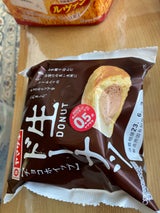 山崎製パンの生ドーナツチョコホイップを通常の販売額より安く売っていたので買いました。ひとくち食べたときの生クリームを練り込んだ口溶けの良い生地のしっとりとした食感と生クリーム入のチョコホイップの相性は良いと思いますね。ドーナツとしてはおもしろい商品ですね。味的にも普通にチョコの持つカカオの風味や生クリームのほのかな甘みが良いですね。普通に美味しい生ドーナツチョコホイップだと思います。また、この商品ひとつで熱量が301kcalと高めなのでダイエットしている人や太りたくない人や血糖値の高めな人や糖尿病の方はバランスの良い食事をして食べるようにしたほうが良いと思います。