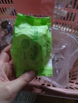 レモナックのメロンバージョン。開ける前からお菓子的メロンの香りが漂う…味は駄菓子メロン。中身はパサパサでコーヒーなどと一緒に楽しみましょう。