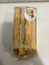 生地が甘め・柔らかめで、半分に切られたハムとチーズ。 ハムとチーズの塩っけより、パンの甘みのほうが勝つかな。 たまに食べたくなるから、そんな時に帰るのはいい!