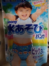 保育園の水遊び用に。 いつもの紙パンツよりかなり割高だけど…仕方ないですね…。 デザインが今年のはちょっと地味で、残念でした。
