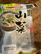 きのこはほとんど入っていませんでした。国産が安心です。山菜うどんにしました。硬めの水煮です。