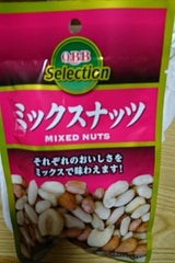 ピーナツ、ジャイアントコーン、アーモンド、カシューナッツが入ってます。塩分もあります。