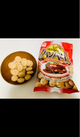 平たい丸で、なんとなくハンバーグを感じるスナック菓子。おいしいですよ