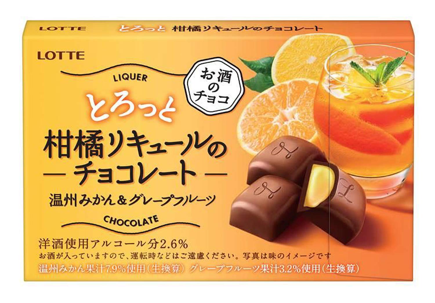 ロッテのリキュールチョコはよくあるボンボンのジャリジャリ感がなく、本当に美味しい。これも香りが良くて手軽なリキュールチョコとしてとても良いです。子供には食べさせられないけど。