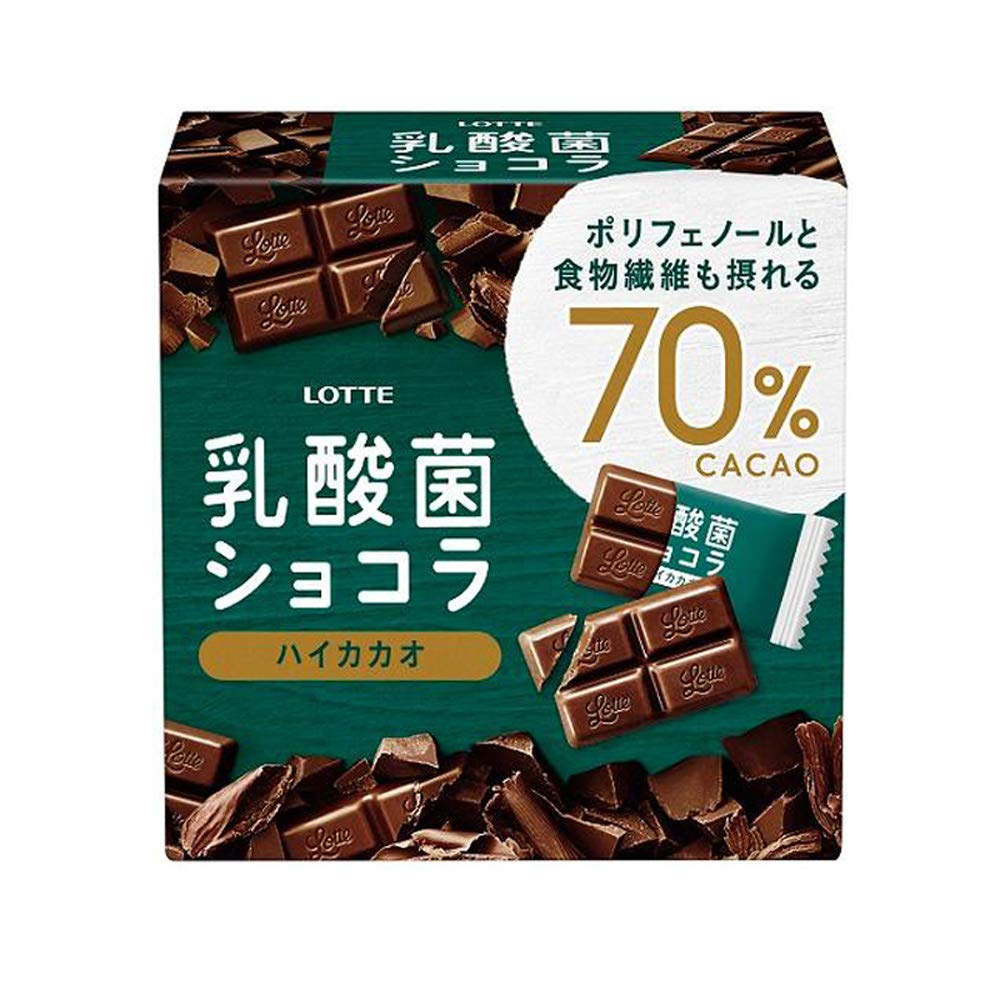 乳酸菌も摂れてカカオ70%は嬉しい。 小包装で更に4等分できるので食べ過ぎも防げるのでつい購入。 箱入りだと自宅で食べるのがメインになりそうです。
