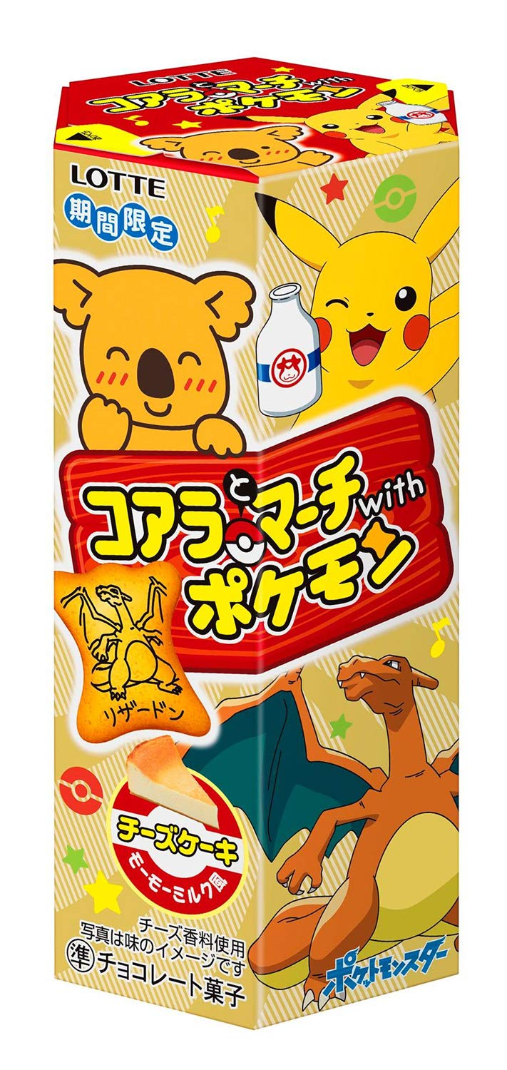 コアラとマーチWithポケモン どこの店でも置いていないし値段もバラバラ。税抜き68円。チーズケーキ味が美味しい