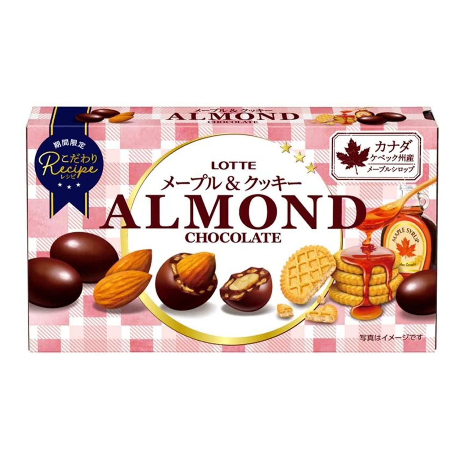 ロッテ アーモンドチョコメープルクッキー 新商品で気になって 口に入れるとすぐにメープルシロップの味 噛むとサクサクのクッキーが出てきて美味しい