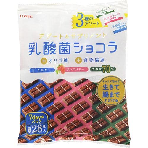 乳酸菌+オリゴ糖+食物繊維が入った上に,味もミルク,ストロベリー,カカオ70%とバラエティ豊かで,こういうお得感満載のチョコって嬉しいですね!