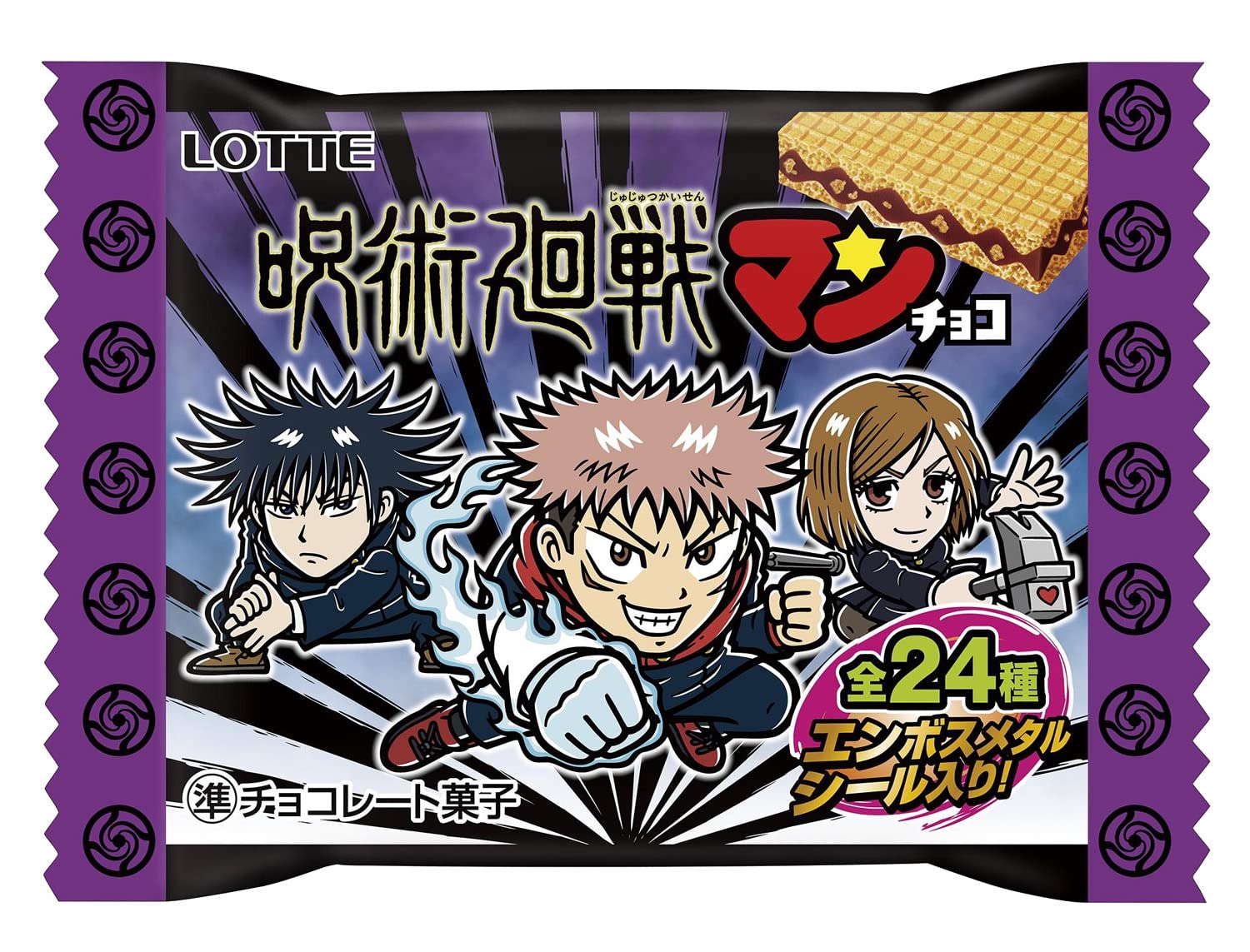 呪術廻戦が好きなので買いました!エンボスメタルシール入り!集めたくなりますね!お菓子も美味しいです!値段も安くて良いです!
