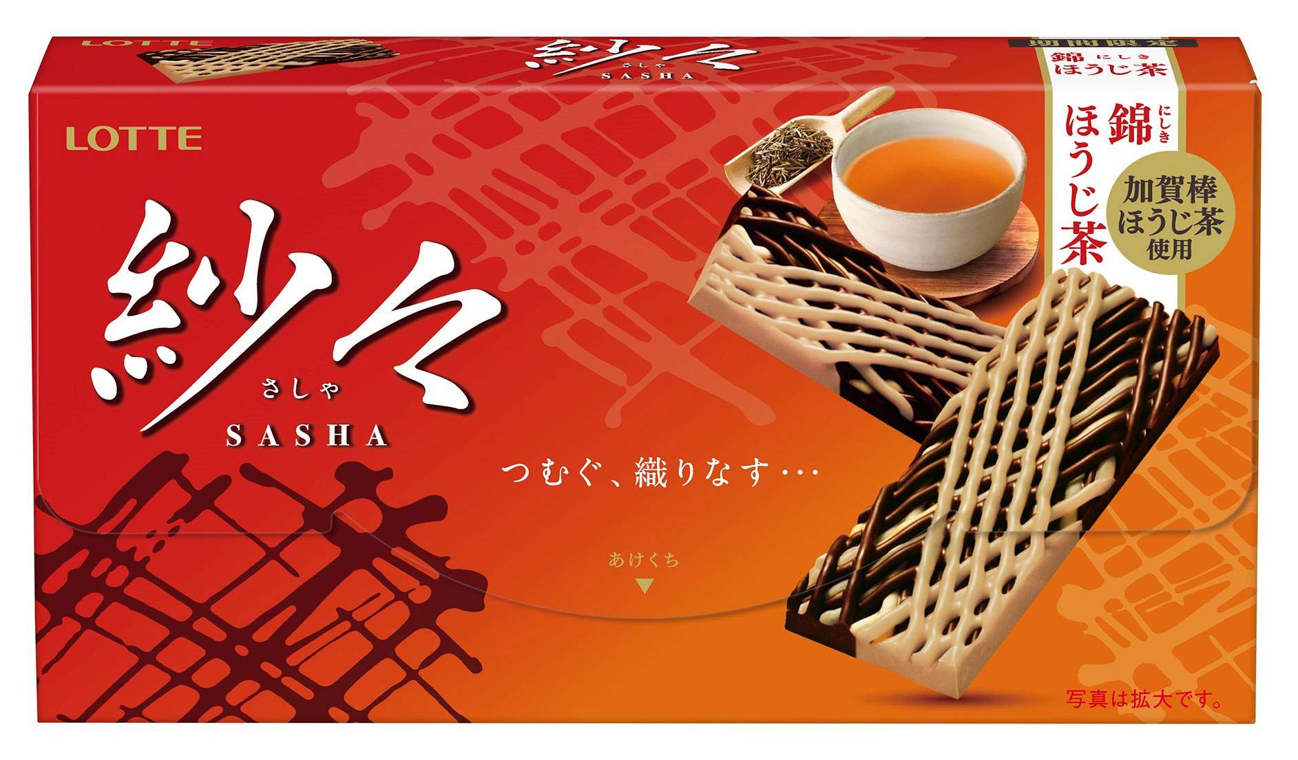 ほうじ茶にハマっていて見かけてつい購入! 開けた瞬間ふわっと香り紗々特有のチョコの層!とほうじ茶がとっても美味しいです 100均で見つけたのでお得感増!!