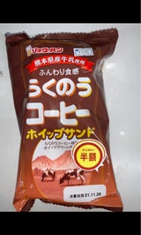 安かったから買ってみたらめっちゃ美味しかった!パンはふわふわで、らくのうコーヒーを生地に使ってあるようでコーヒーの?香ばしさが感じられる。中のホイップクリームもさっぱりで軽い!