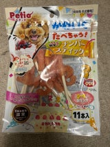 初めて見た商品、数字のトコロは ささ身の柔らかジャーキー スティックはガム ミニサイズで自分で手を添えてパクパク