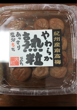 我が家の梅干しはこれしか食べません。甘くて、これだけで食べられます。皮が薄く肉厚でジューシーです。お酒に入れるには甘すぎるかも。 時々皮が分厚いものもあります。