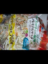 すぐ使えるし、野菜高騰していると助かるサラダですが、水気が無いのと薬の味がするような気がします。