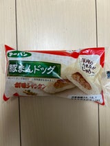 第一パンの「豚まんドッグ」です。 豚肉のうまみがじゅわ〜とします。 創味シャンタンで味付けされた豚肉具材が包まれています。 レンジで温めて食べると一層美味しさ増します。