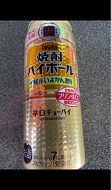 限定生産の愛媛産いよかん割りが、税抜100円だったので購入しました!果汁0.4%、アルコール分7%です。いよかんの味わいは、少し物足りないですが、香りが良いです!
