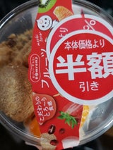 上にクリームとフルーツ、下にはとろーりとしたわらび餅です。 フルーツあるので、甘過ぎずたべれます。