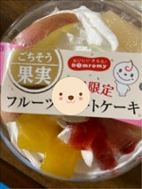 ドンレミー ごちそう果実 フルーツショートケーキは、白ももシラップづけ、リンゴ、いちごソース、マンゴーシラップづけ、キウイフルーツ、ゼリーが混ざり合ってとても美味しいです。