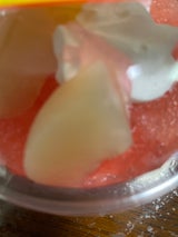 白桃と黄桃かな、上にトッピングされており贅沢。