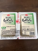 値引きシールが貼って有ったので購入。麻婆豆腐に使用する。同商品のデカイ ワンパックだと余るし 2パックになってる方が使い勝手が良いし 共に同じ内容量なのに こっちの方が少し安いし。これは 🇨🇦 産大豆使用だってさっ。