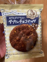 (^^)近所の行きつけのスーパーにステラおばさんのクッキーコーナーができまして、たくさん種類があるので端から順番に食べてみてます。 今日はこちら、ダブルチョコナッツ。3種類目です。 チョコレートの香りが良いですね。チョコレート生地の中にチョコチップとナッツがゴロゴロと。美味しいです。 3種類目にして今のところナンバーワンです。しっかり甘さもあるのでストレートティーやブラックコーヒー、無糖のカフェオレなど甘くないドリンクと合わせるとGOOD。